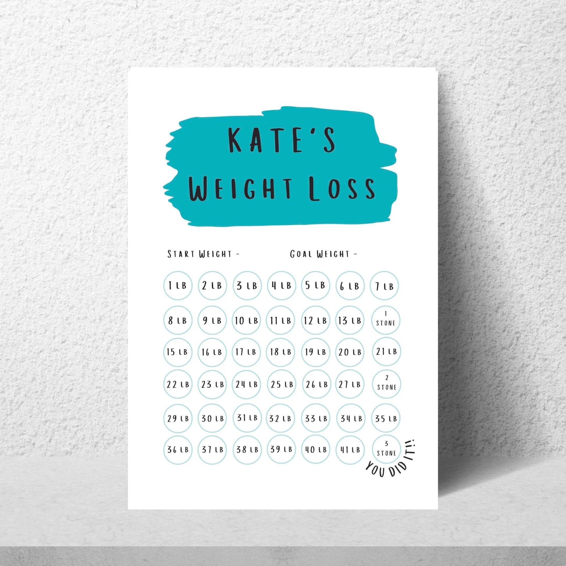 This weight loss tracker is great for helping you to achieve your weight loss goal, the name is personalised the weight loss goal is personalised and you can choose from Beige, Red, Purple, Blue, Grey, Pink and Green.